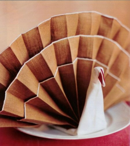 This folding scheme is one of the most popular. The napkin unfolds face up and gradually turns into a fan in the well-known way: