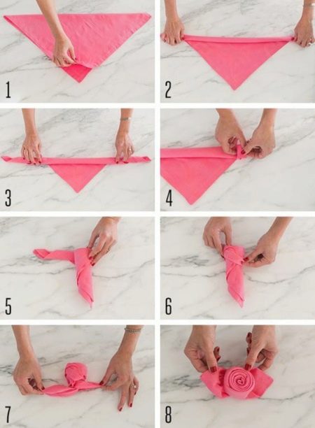 Folding fabric items for table setting has a huge number of options. Below are the most popular step-by-step methods that will become useful knowledge in the arsenal of any hostess.
