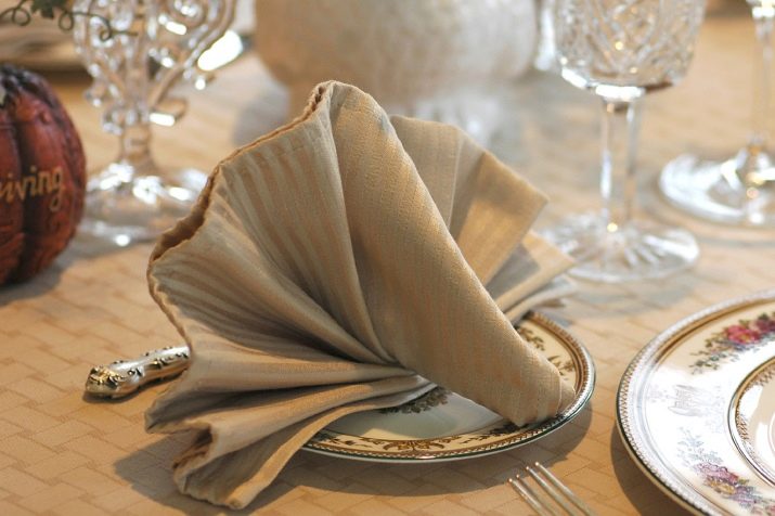 In addition to the standard options for folding fabric napkins, there are more original ones that guests will remember for a long time. You can make a table with your own flowers from napkins, various figures or a peacock.