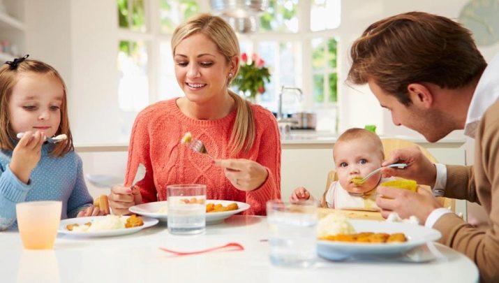 The child should be planted at a common table with all adults, so that he gets used to the company. There are special high chairs that will allow the baby to sit on a par with adults and feel like a full member of the family. During lunch, it is not recommended to turn on the TV, which will distract from the process of absorption of food.