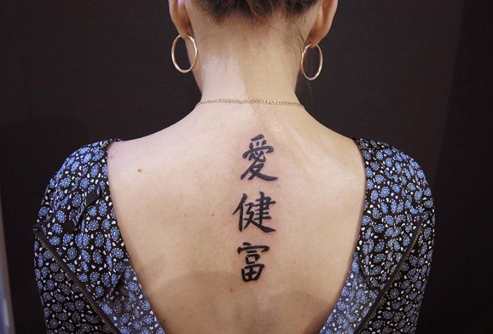 Tattoos and nail art using Chinese written characters are very relevant. It is believed that application to the body, especially tattoo, can change a person’s life. Experts recommend placing a tattoo on the neck, arm, but so that they are not accessible to prying eyes.