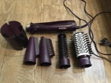 The appliance is sold with several nozzles of different sizes, which are able to rotate independently. Also, the equipment provides for a comb and a hub. Thanks to the latter, the device for modeling hairstyles turns into a regular hair dryer for drying hair.