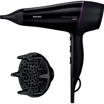 Of course, the hairdryers of the Dutch company Philips have a good reputation. For example, you can consider Model Philips BHD176 DryCare Pro. The device has two useful functions - ionization and cold drying. Three temperature conditions and two powers allow you to choose the optimal care for any hair. The power of the device is 2200 watts. The hairdryer is equipped with a removable filter, diffuser and hub. The length of the wire is 1.8 meters.