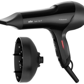 Choosing a hairdryer for home use, it is correct not only to evaluate the available characteristics, but also to “try on” it for yourself. In order to avoid any problems at home, you should also pick up the device in your store and evaluate the weight, shape and comfort of use. It is imperative that the hand does not get tired during drying, otherwise each use of the hairdryer will create stress. Be sure to check for the presence of a hub nozzle that directs water flows. If the girl has thin hair, then it is worth giving preference to models with a diffuser.