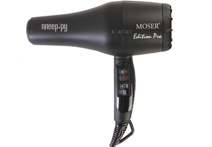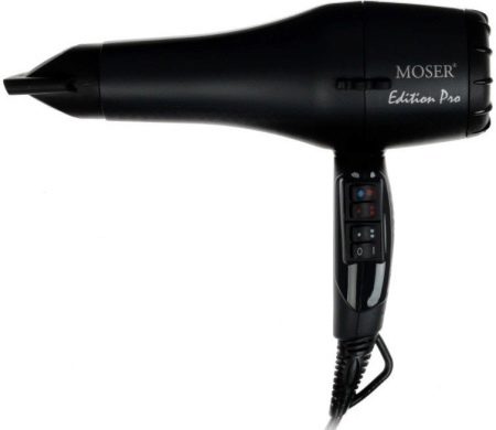 Moser hair dryers are characterized by a fairly high power, two speeds and three temperature conditions, as well as a supply of cold air. In addition, tourmaline ionizers are built into them, which protect against the negative effects of hot air.