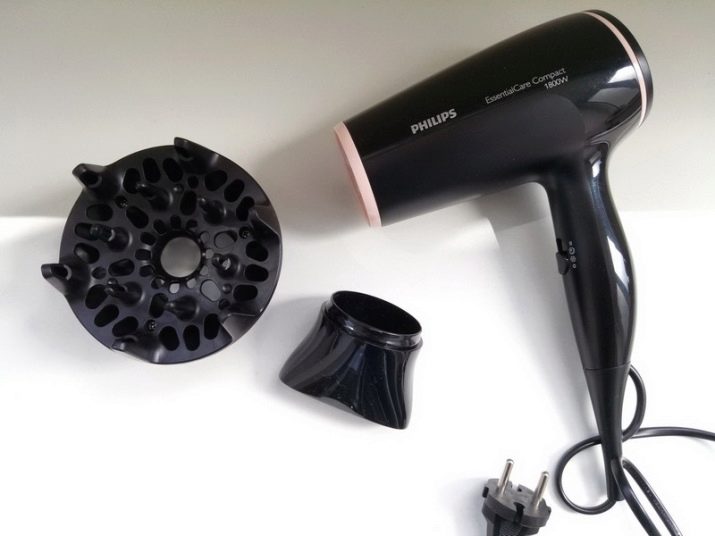 The next important aspect is nozzles. Not all hair dryers in the kit have different nozzles. Usually the hair dryer is equipped with only a hub. But many Philips devices also have a diffuser nozzle, which will help to add volume to thin hair, as well as make curls wavy using a special gel.