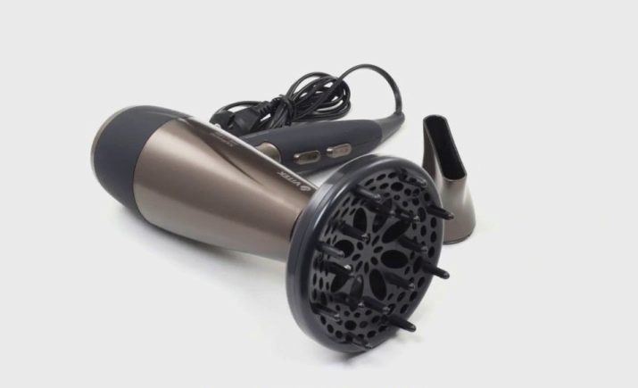More expensive hair dryers often have a diffuser. It is a circular disk in which there are many small holes and so-called "fingers". A tool with a diffuser allows you to achieve a stronger volume at the roots, gently dry your hair, and also form small curls. Some models include an active diffuser, the "fingers" of which move during operation.