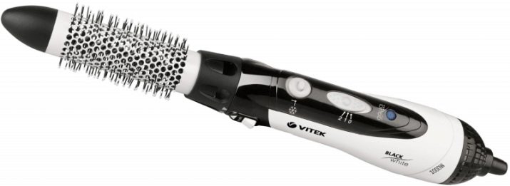 - VT-1342 is a hair dryer brush. The product is equipped with an ionization function that helps maintain curls in a healthy state. It is carried out in black and white. Such tools have 2 modes of operation. And also their feature can be called the presence of a ceramic coating.