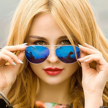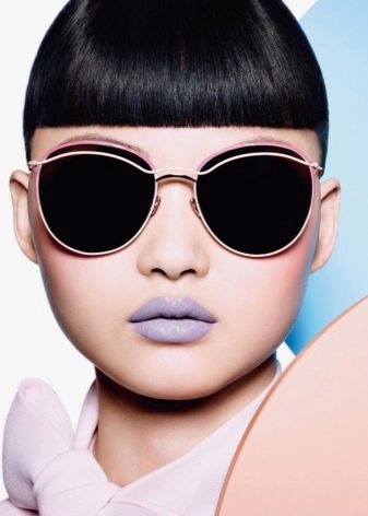 Asymmetric shapes can also decorate a face with a round oval. For example, the “butterfly” rim, loved by girls with an oval face, makes the face more elongated. You can learn “butterflies” by expanding the rim of the temples and narrowing the nose. Perhaps for everyday wear, accessories of this form may seem too extravagant and bold, however, sunscreen options deserve close attention.