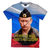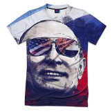 - Patriotic model from Vsemayki.ru: T-shirt with the image of the President of the Russian Federation on the background of the national flag. Price - 1290 rubles.