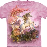 - A romantic model from The Mountain: a pink dream T-shirt with a fabulous unicorn, rainbow, flowering tree and a magical castle. Price - 1399 rub.