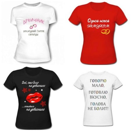 T-shirts for a bachelorette party are distinguished by unusual inscriptions, slogans or pictures. You can display them using printing.