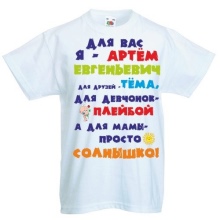 - T-shirt with a name and its “decoding” from compliments - a cute, individual gift.