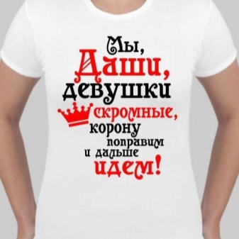 T-shirts with female names are chosen by girls who want to make themselves known to the whole world. This is a great way to build confidence in yourself to feel comfortable at a party or other public event. In addition, a T-shirt with her name can be a great gift for a sister, girlfriend or work colleague.