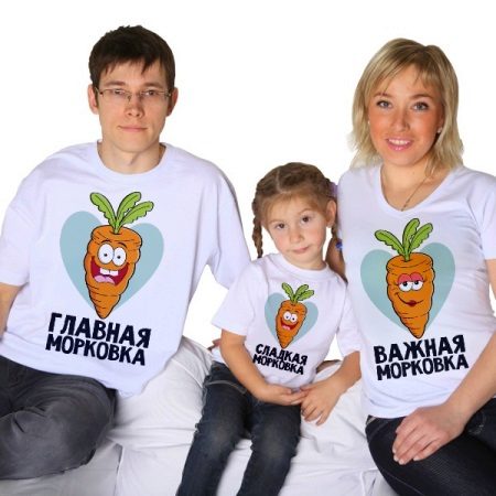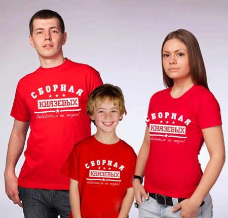 For family holidays, they often order whole sets of t-shirts for each of the participants in the celebration. For example, at the birthday of your child, not only the baby himself, but also his parents, may appear in registered T-shirts.