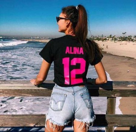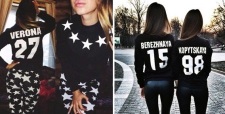 T-shirts for girls with the names of guys are a great way to tell everyone around you that your heart is already occupied by a person whose name is on your T-shirt. Such pairs of T-shirts often give each other on anniversaries of important events in their relationship.