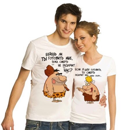 However, lovers who have not yet managed to register their relationship, also acquire personalized T-shirts to please their soul mate. Such a T-shirt can be a romantic way to declare love or offer to take a new step in the development of relationships.
