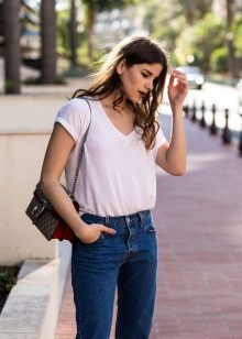 Although a plain t-shirt can be called a universal piece of clothing that any girl can wear if the figure has any flaws, this should certainly be considered when buying t-shirts and combining them with other clothes.