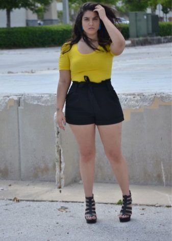 When full, do not wear excessively short plain t-shirts. Such tops will attract attention to the waist and, accordingly, to its shortcomings.