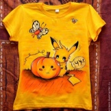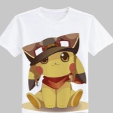 On T-shirts, the most popular Pokémon due to cartoons or special character traits are most often found. First of all, this is one of the main characters - a pretty yellow Pokemon with red cheeks Pikachu.This can be a full-length monster or an image of his face on a completely yellow T-shirt. It can be drawn as in a cartoon or executed in any artistic style. Pikachu is widely known even to those who did not watch Pokemon, it is simply impossible not to recognize.