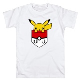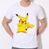 Since Pokémon are bright characters in cartoons, they often print with them on classic or sports T-shirts, and not on romantic styles. Basically, a print with Pokemon is applied to monophonic models - white, black, red, yellow, blue. Much less often is a colored T-shirt with a pattern already applied to it, for example, a space one.