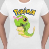 Another popular pattern is the red and white pokeball - an item in which Pokemon is caught and where they live. And, of course, Ash is the owner and friend of Pikachu, as well as the main character of the cartoon. Often these can be simply inscriptions with the word "Pokémon" or using additional text. Ash had not only Pikachu, but also other Pokémon, which are often depicted on T-shirts. Bulbasaur, Charmander, Squirtle, Piji, Caterpie, Onyx, Lapras - often used images.