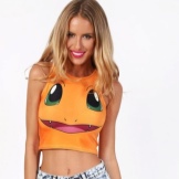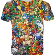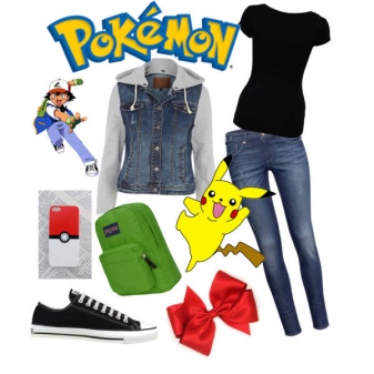 Often, a print can be a group of different Pokemon, pokeball and Ashe at the same time. There may be drawings with crowds of pikachu, less commonly, other Pokemon. You can see only silhouettes of muzzles or entire scenes from the cartoon. Most often, the print is on the stomach, chest, sometimes on the back.