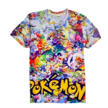 The most common model is the simplest. That is, a T-shirt with short sleeves, without a collar, without pockets or zippers, with a round neck, is worn over the head. It is well suited for printing, even large ones like Pokemon. There are various options for sleeves and their lengths (set-in or raglan; short, sleeveless, long, three quarters) and necks (round, v-shaped, oval, triangular, clamp). Styles can be tight or loose, long (below the hips), medium length (to the hips) or shortened (visible belly).