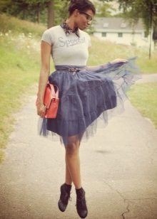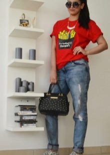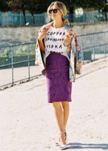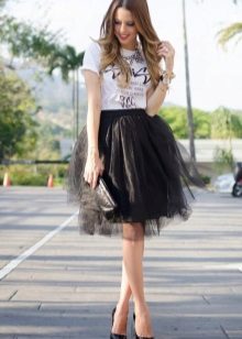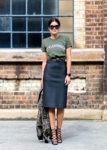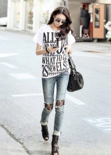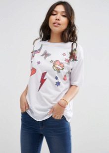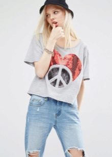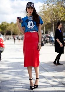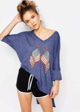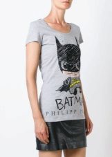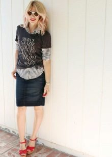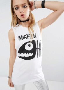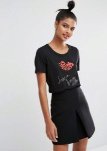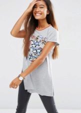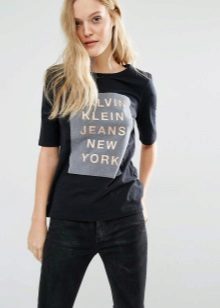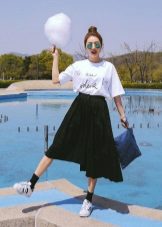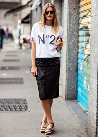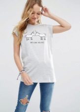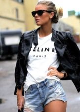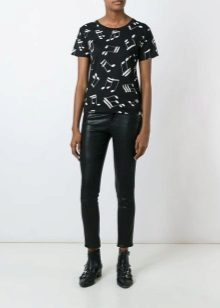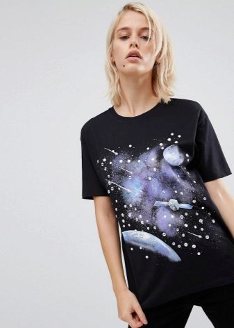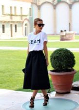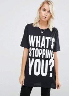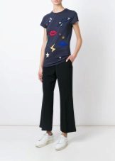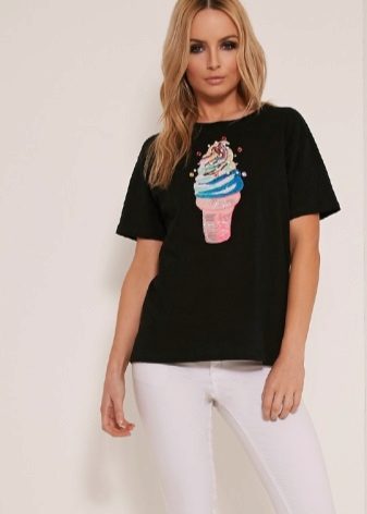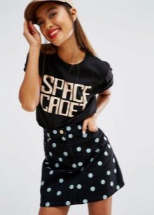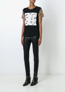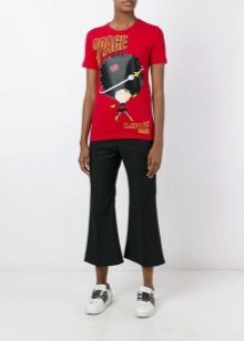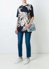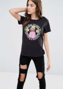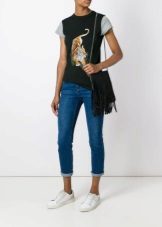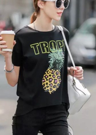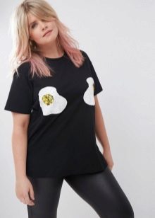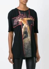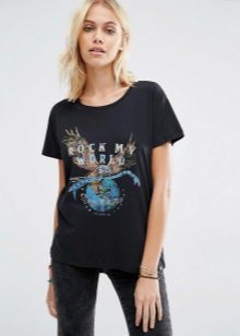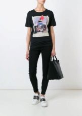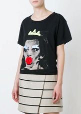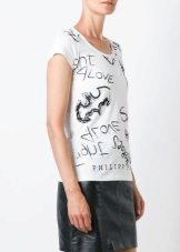 Such a T-shirt will suit you if you prefer the street style or sport chic. With jeans or leggings, she will look perfect. A jeans or leather skirt is also suitable, and shoes - sneakers, slip-on shoes, flat sandals.
