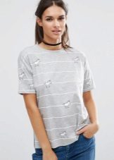 Gray t-shirts with patterns can easily complement any everyday look. If this product with a concise inscription, it even fits into a business look. Wear such a T-shirt with light or dark jeans, and if you want to add brightness to the image, choose bright accessories.
