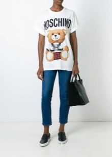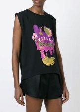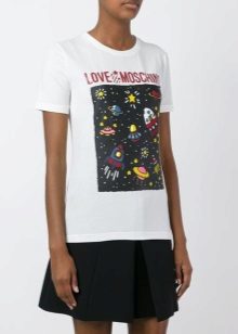 Well, in a creative t-shirt from Moschino, you definitely will not go unnoticed! This brand is famous for its unusual prints and original design ideas, so brave girls who are not afraid to be in the spotlight will like it.