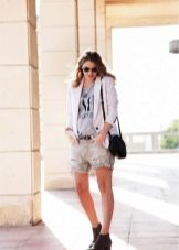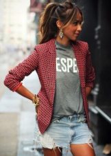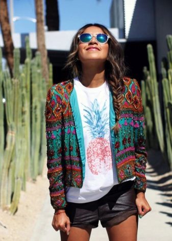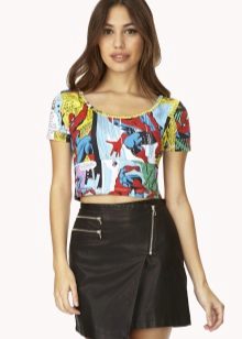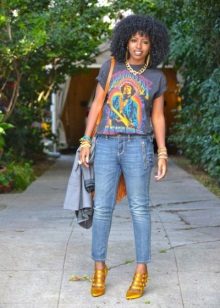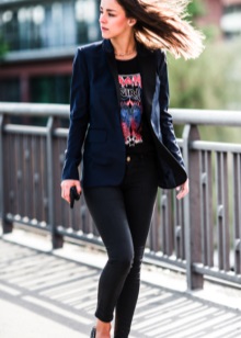 If you are going to a party, there is nothing better than a bright print T-shirt! You can wear it with short shorts or jeans. A stylish miniskirt will also be appropriate. The blazer or jacket-jacket will complement the image. Do not forget about high-heeled shoes, a small clutch bag and catchy jewelry that will help you stay in the spotlight all evening.