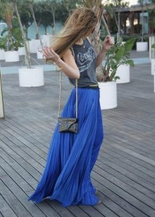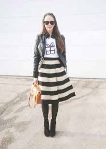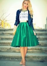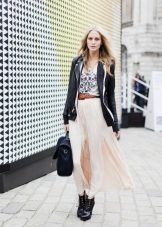 It can be a mini, midi or maxi length skirt. Cropped trousers or shorts are also possible. A cropped cardigan or blazer will complement the image. Match mid-heeled shoes and beautiful, unobtrusive jewelry to this outfit.