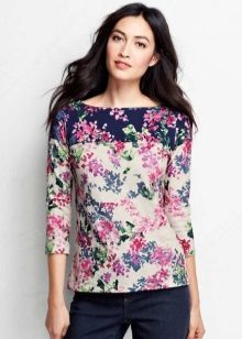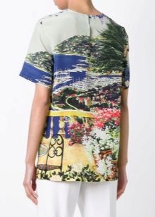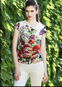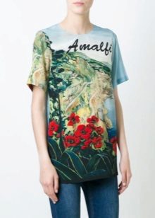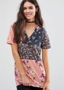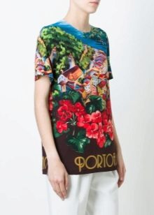 There are models with floral patterns, with large and small patterns, bright floral motifs. Such a T-shirt will be appropriate in any situation, whether it is a walk, shopping or a date. You can even pick up a quiet card with a laconic floral print for work that will successfully replace a shirt or blouse.