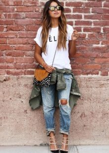 For every day there is nothing better than a comfortable T-shirt with an interesting print. You can wear it with any clothing convenient for you. It can be jeans, leggings, pants, a skirt. From above you can throw a bomber jacket, a jacket, a jacket, a cardigan. From shoes you should choose something without a heel - sneakers, sneakers, loafers, slip-ons.