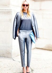 To give the look especially chic, you can wear trousers or a skirt with sequins.