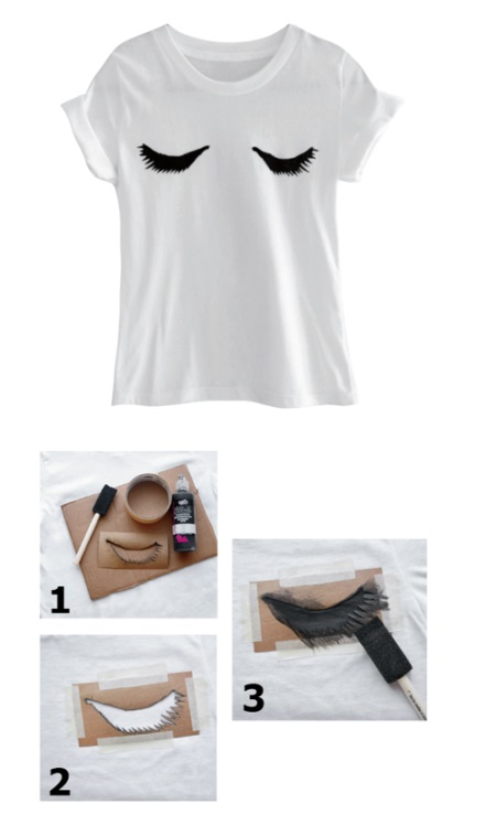 If you like fashion T-shirts from Chiara Ferragni with the image of eyes and cilia, you can try to repeat this idea with your own hands.