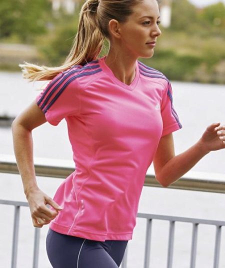 Clothing for sports should be not only comfortable, but also beautiful. A bright pink T-shirt perfectly copes with this task, which is not only perfect for sports training, but also looks very stylish and modern.