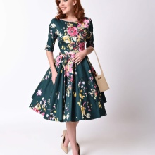 In stores, it is now easy to find clothes in retro style. For example, it can be a dress with a tight-fitting top on wide straps, a boat-neck or bare shoulders. The skirt of such a dress, on the contrary, should be magnificent. Another characteristic cut for a dress from the last century is a trapeze.