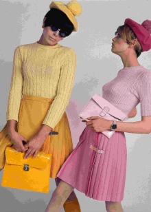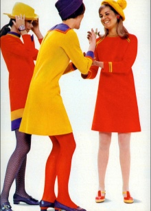 Girls of the 1960s loved miniskirts, sundresses with an A-line or straight cut, turtlenecks, tight-fitting sweaters. In cool weather, a tweed jacket in dark blue, brown or pink with three-quarter sleeves is perfect.