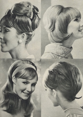 - High hairs of “babette”. Became popular thanks to Brigitte Bardot. This whipped, fluffy hairstyle based on fleece has become a symbol of the 60s.