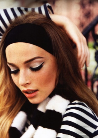 Makeup will complement the image with eyes underlined by swallow arrows and heavily tinted eyelashes. It is enough to cover lips with lipstick of a neutral shade or gloss.