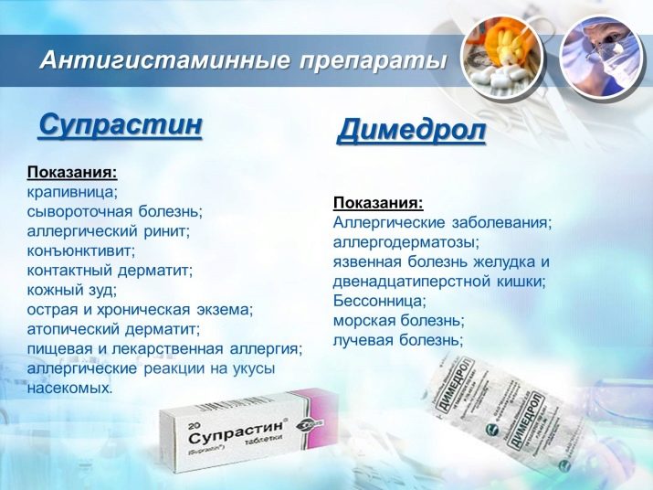 - Antihistamines. Their purpose allows you to eliminate the development of an autoimmune reaction of the body to an allergen, while reducing tissue swelling and a burning sensation.Antihistamine medications include loratadine, clarithin, diazolin, suprastin, peritol, traxil and other similar drugs. In order to successfully treat allergies, one of these drugs should be taken as directed by a doctor for at least 10 days. But do not self-medicate, but it is better to consult a doctor.