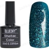 - Golden beauty - a tool with a large volume of a bottle, in comparison with other varnishes of the Bluesky brand. It features a thicker consistency and increased cost. Dries in half a minute, is presented in a huge number of color schemes.