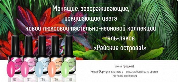 - Paradise islands - a cheerful line in the summer is represented by blue, peach, pink, fuchsia, green and other dense colors. At the same time, they all dry well and are distinguished by the brightness of the pigment.