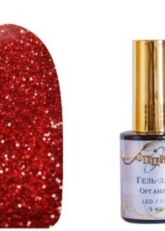 - Glitter. The composition of these gel polishes includes small sparkles that give the nails an unrivaled effect.