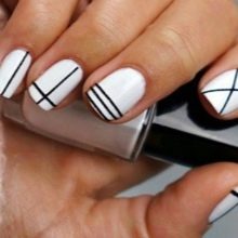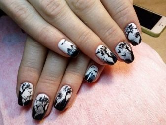 The classic combination of black and white is also often found in manicure. Here you can find not only geometry, flowers, but also whole pictures in black and white colors.