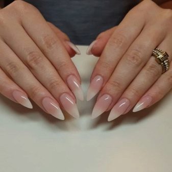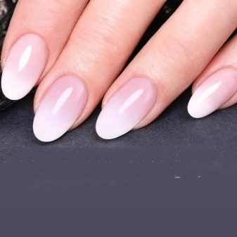 Ambra on nails is another rather popular type of design made using white shellac. This type of coating has a specific name - Baby Boomer. Here the transition from camouflage coating to the white tips of the nails, in contrast to the standard jacket, where the smile is clearly drawn, is blurred.