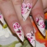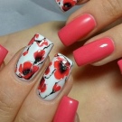 Among all types of nail design, floral design retains undoubted popularity at all times. This is the embodiment of femininity and tenderness. With single flowers and bouquets you can decorate nails of any length and shape. A special reason for this is not needed. Small modest patterns on accent nails will help to celebrate the spring mood or diversify the modest office option. More significant events allow not to constrain oneself in luxury. You can use gel modeling, stained glass manicure, use many decorative elements.