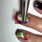 The application technique resembles drawing with a needle on ordinary varnishes. Only for gel it is advisable to use the thinnest brush. If there are many colors so that they do not mix, some masters recommend still periodically drying fragments of the picture under the lamp for at least 10 seconds. For better spreading, you can use a special melting coating, or you can use a familiar gel. After a light watercolor effect, it is well dried under a lamp, and then a glossy or matte top is applied.